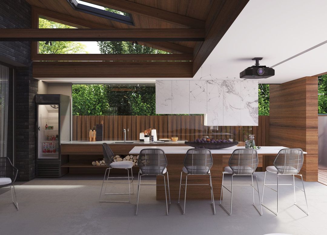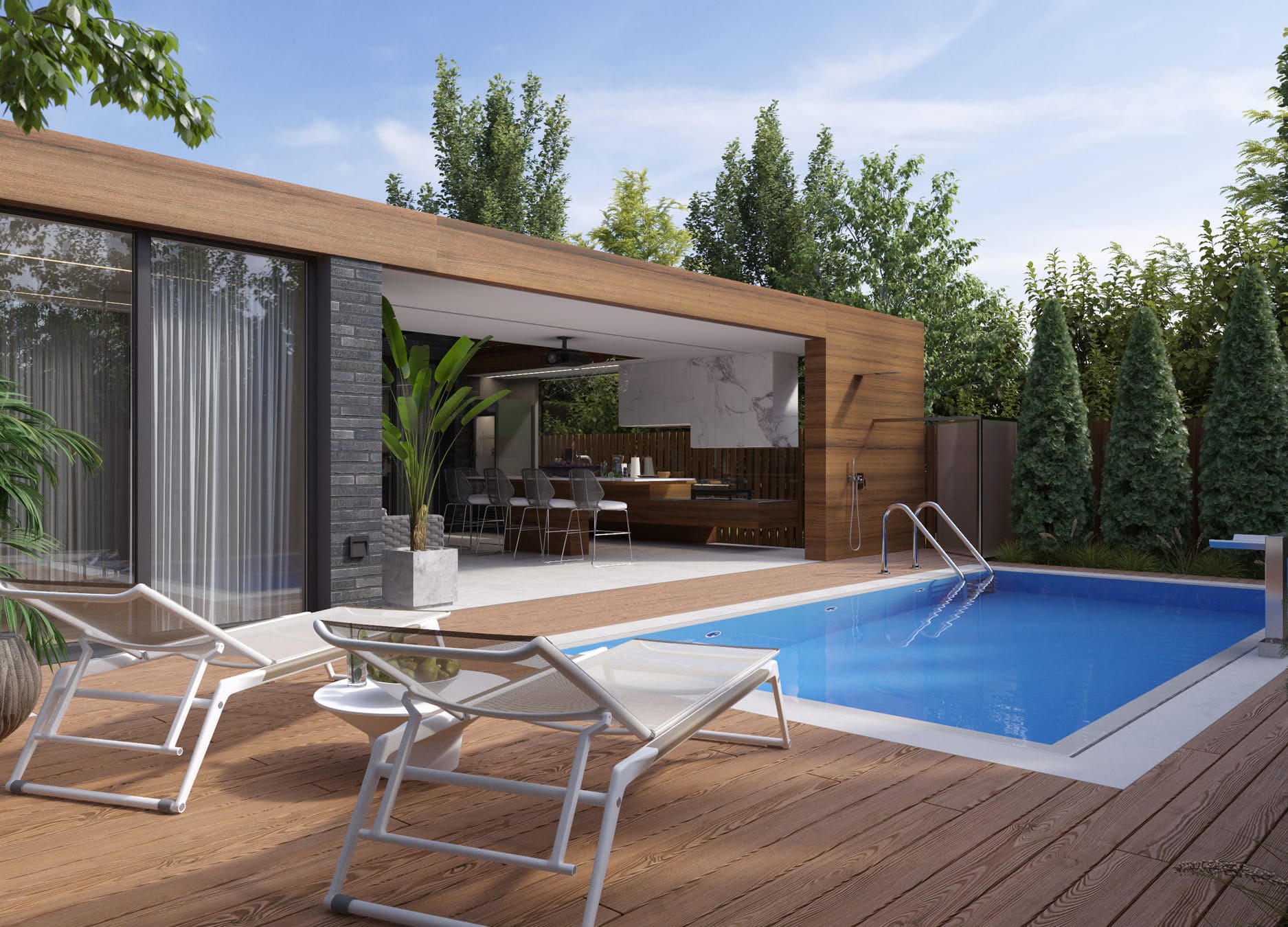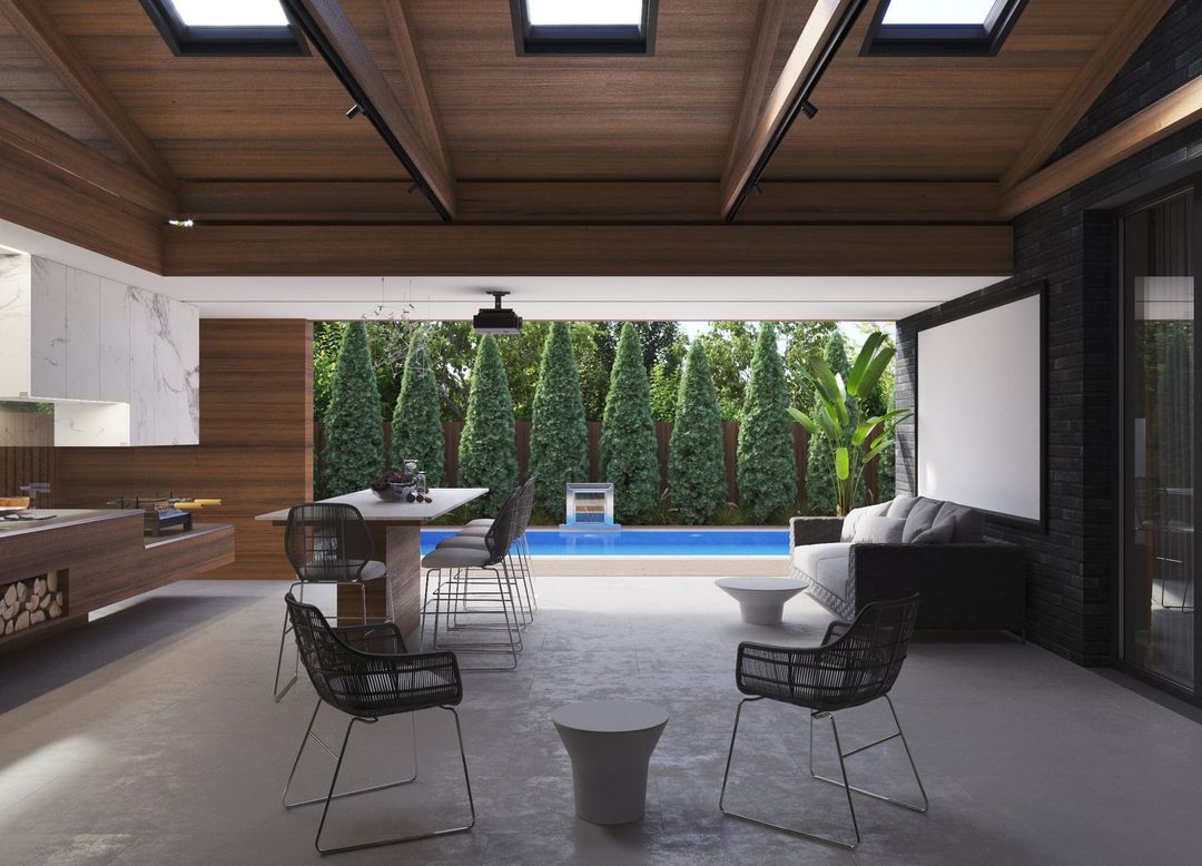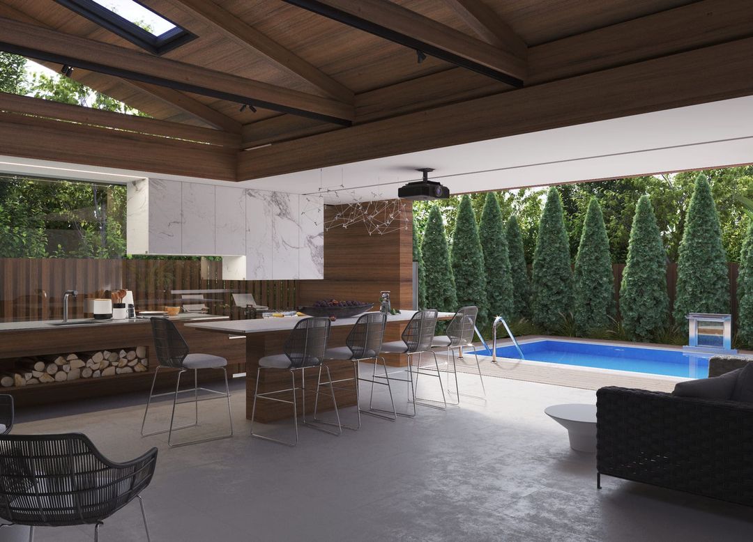 «Метаморфоза» – это проект реконструкции типового дома и территории вокруг него. Изначально дом был квадратным в плане с бежево-розовыми фасадами. В доме не хватало гостиной, мест хранения, а кухня была недостаточно большой для членов семьи заказчика и их гостей. Мы сделали несколько пристроек, создав, таким образом, просторную гостиную с камином,выходящую в зону летней кухни.