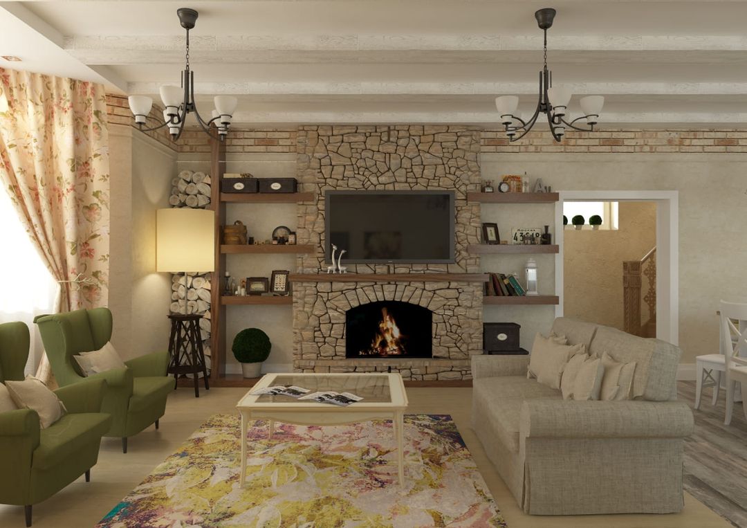 Одним из главных элементов интерьера стал, конечно,камин, который мы встроили в портал, отделанный камнем. Он придал пространству уют, камерность. Сразу представляется зимний вечер, потрескивание дров, за окном падает снег, а вы в хорошей компании вдали от суеты города.