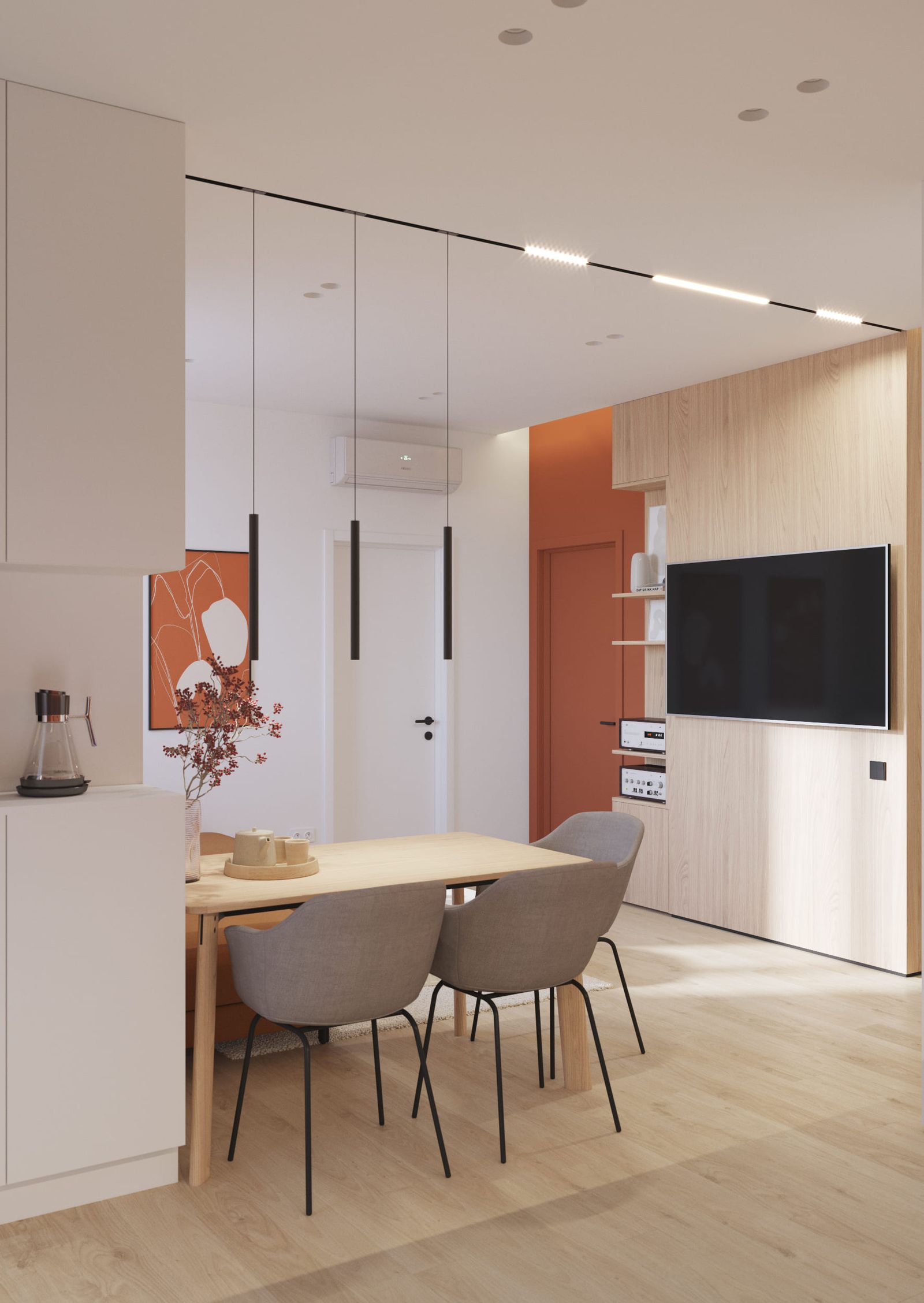 Дизайн-проект «Терра кота» разработан для квартиры площадью около 90 м2, расположенной в г. Батайск. Дом каркасно-монолитный, из двух жилых комнат есть выход на один общий балкон площадью почти 14 м2. Главной задачей, которую заказчик поставил перед нами, было создание ещё одной комнаты, так как иначе гостиная должна была бы выполнять и функцию спальни.