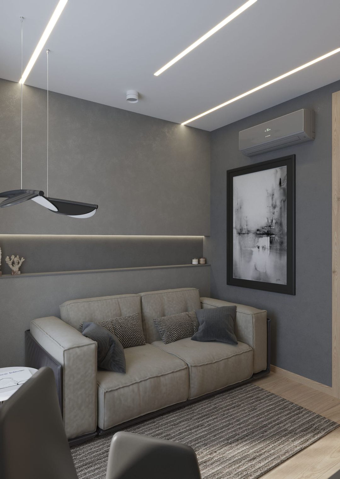 Дом площадью около 140 м2 расположен в КП «Донской» недалеко от Ростова-на-Дону. Дом одноэтажный с отдельным выходом на террасу и небольшим участком. В процессе работы над дизайн-проектом к нему пристроили небольшую котельную, чтобы вынести котел из кухни, и тамбур.
